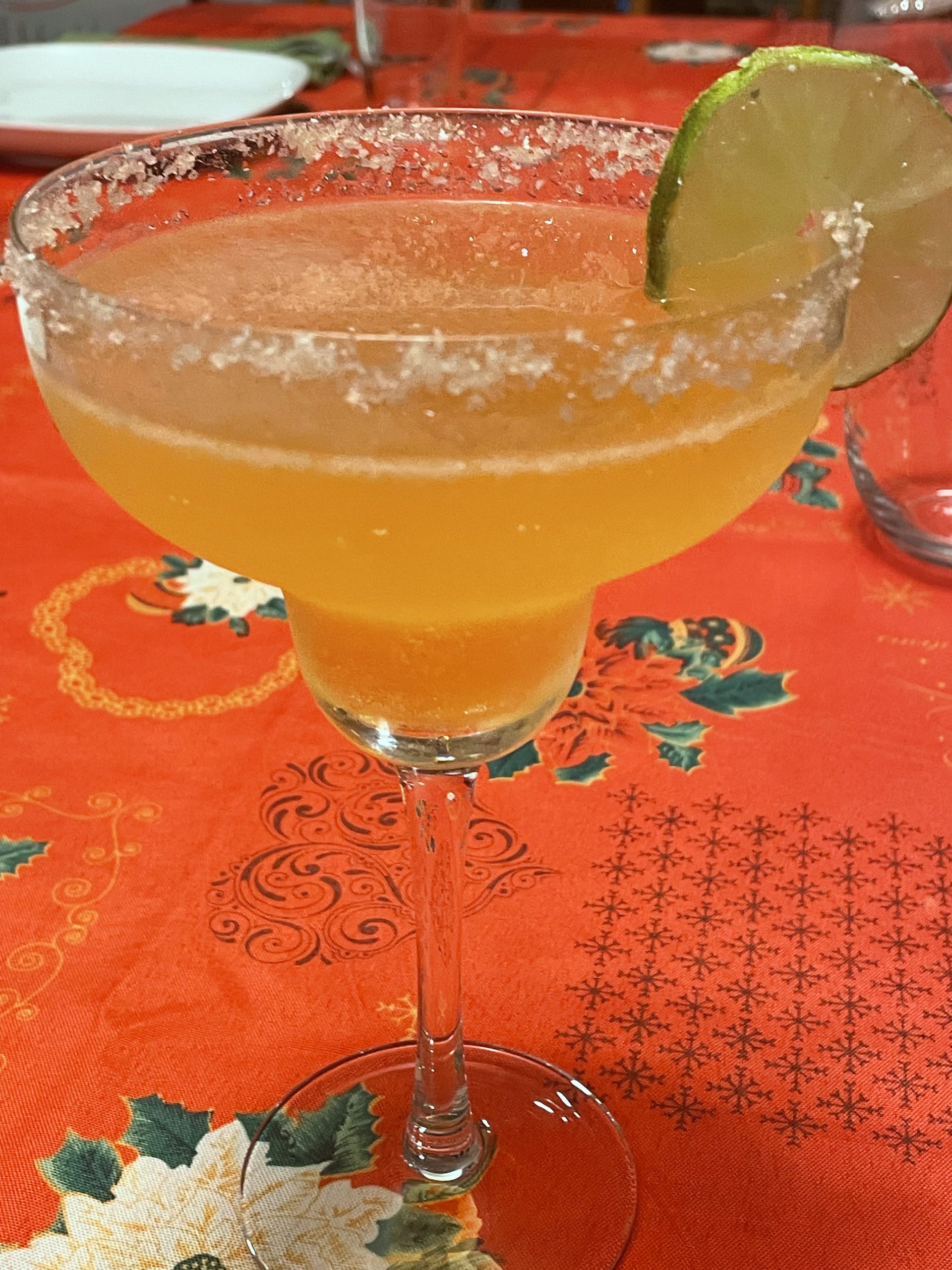Qui non e’ la California, ma i ristoranti messicani non sono a male (pero’ detto da una che in Messico non c’e’ mai stata..). Quando andiamo, la margarita e’ d’obbligo ( non vi dico che bicchiere enorme ti portano). Mi piaceva cosi’ tanto che ho imparato a farmela anche a casa. Non la faccio spesso (perche’ io rimango comunque una persona da vino rosso) ma quando mio figlio chiede guacamole e pico de gallo, io ci aggiungo tortillas, strisce di manzo, peperoni e cipolle e si mangia messicano anche a casa.